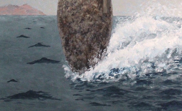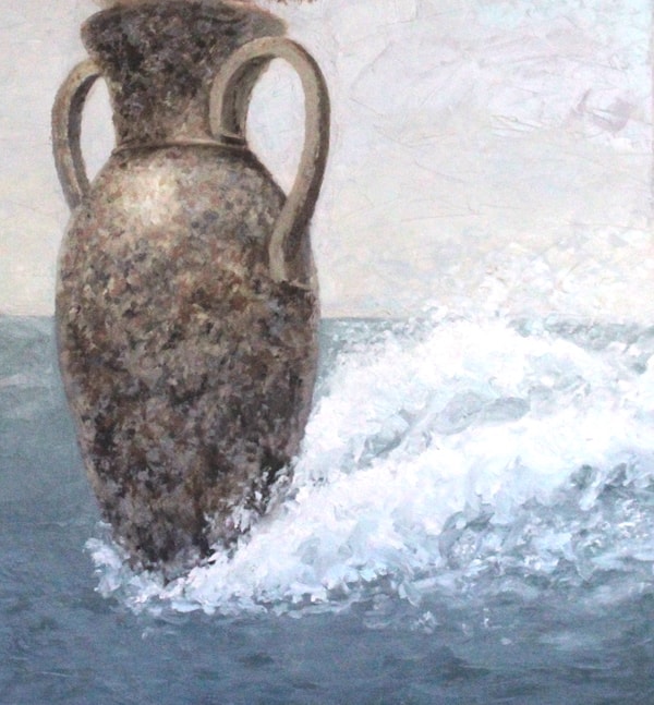 For the water, I add reflections of the vase and sea spray. I also further lighten the water toward the horizon