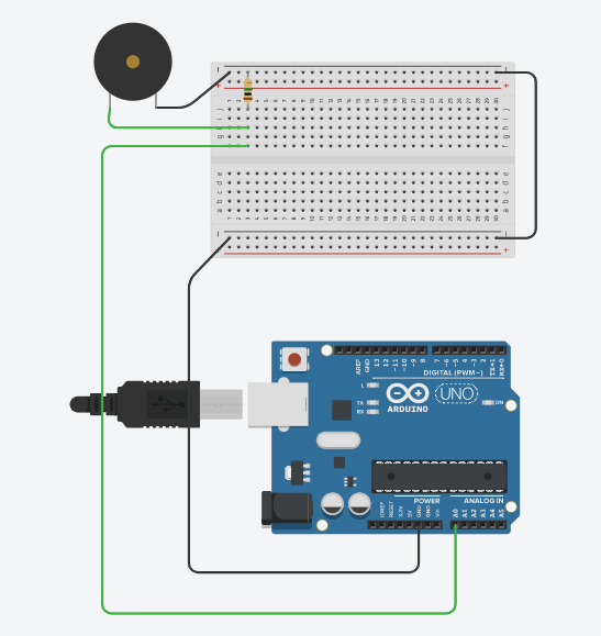 A 1 million Ohm resistor allows the Piezo's value to be read clearly. (Why 1 million Ohms?
