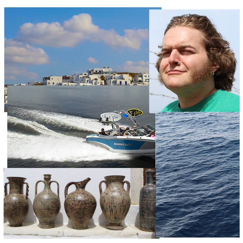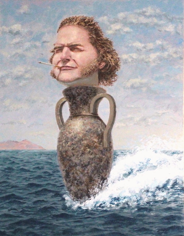 After an amazing vacation to Greece, I had hundreds of photos in my new camera. There were so many photos that would have made great paintings that I could not choose a single one- so I combined several to make Aegean Friday, with my brother Bennett Burnside as the model.