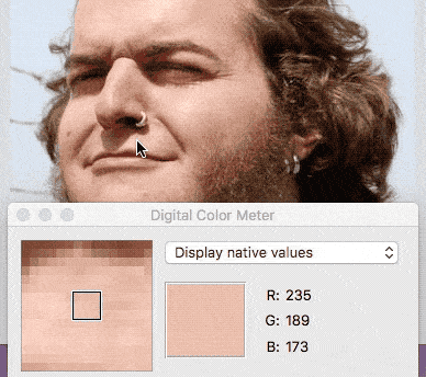 I’m carefully studying the reference photo, looking for these differences across the face. It takes a trained eye- But I also have a secret weapon- the color meter on my computer